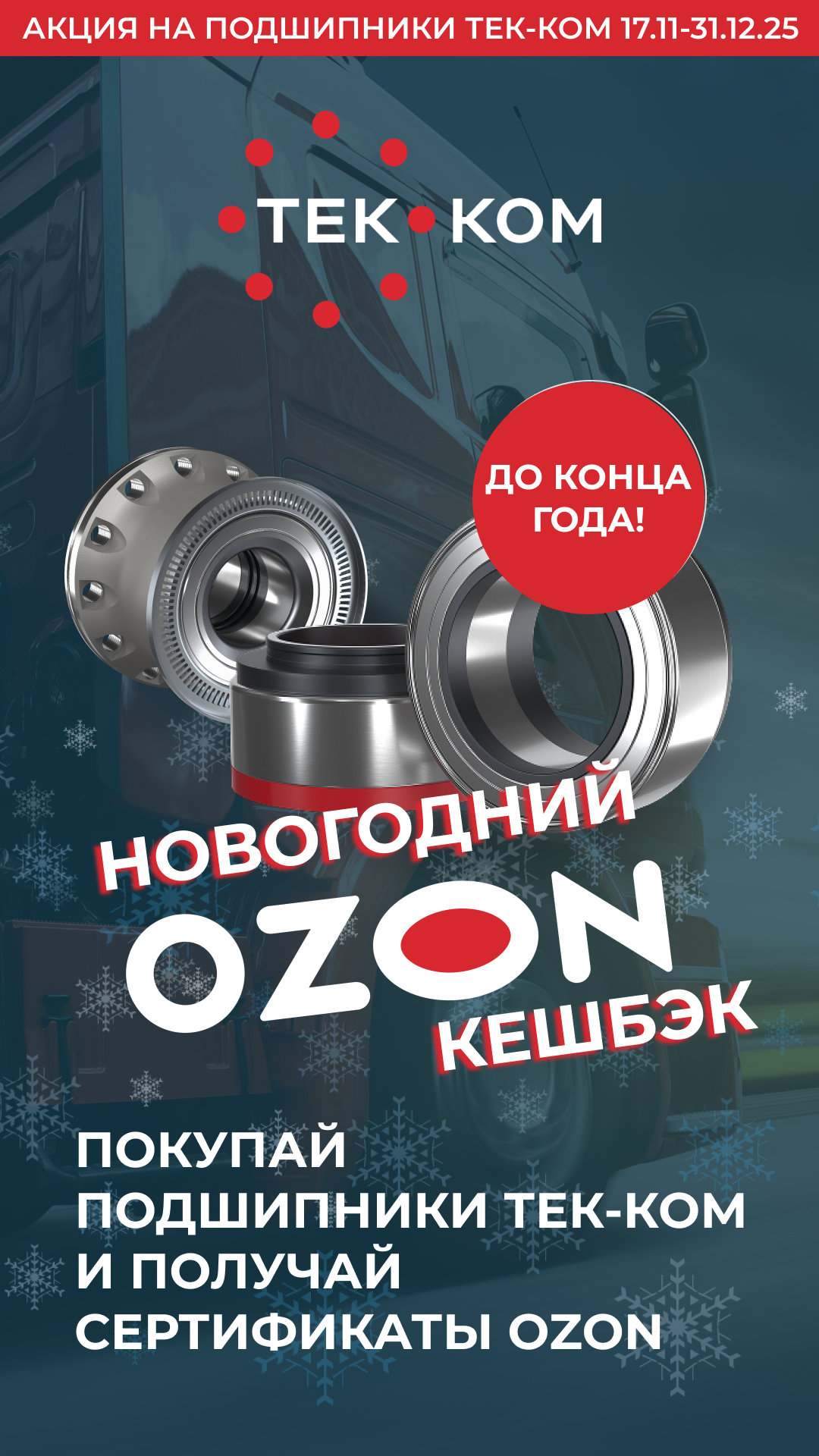 Уважаемые партнеры! С 17 ноября по 31 декабря 2025г. покупайте любую продукцию бренда ТЕК-КОМ в ассортименте ТruckMotors и получайте отличные подарки - сертификаты OZON!